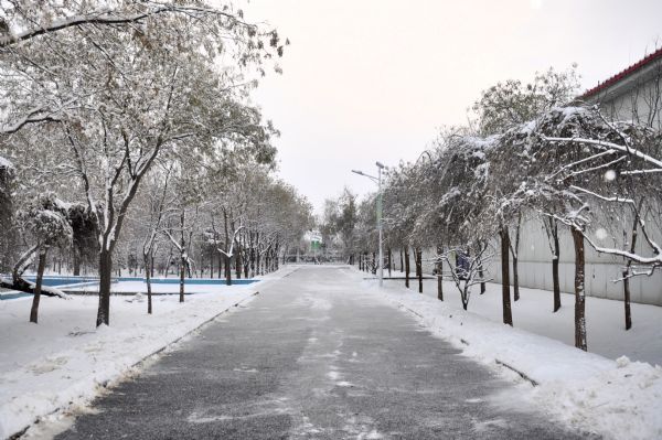冬雪,為尚未落去的柳葉掛上晶瑩;為常青的松柏蓋上棉被。一切都顯得恬靜、素雅,唯一能聽到的便是咯吱作響的腳步聲,并不吵鬧,卻為這寒冷、靜謐的清晨增添了一份樂趣。