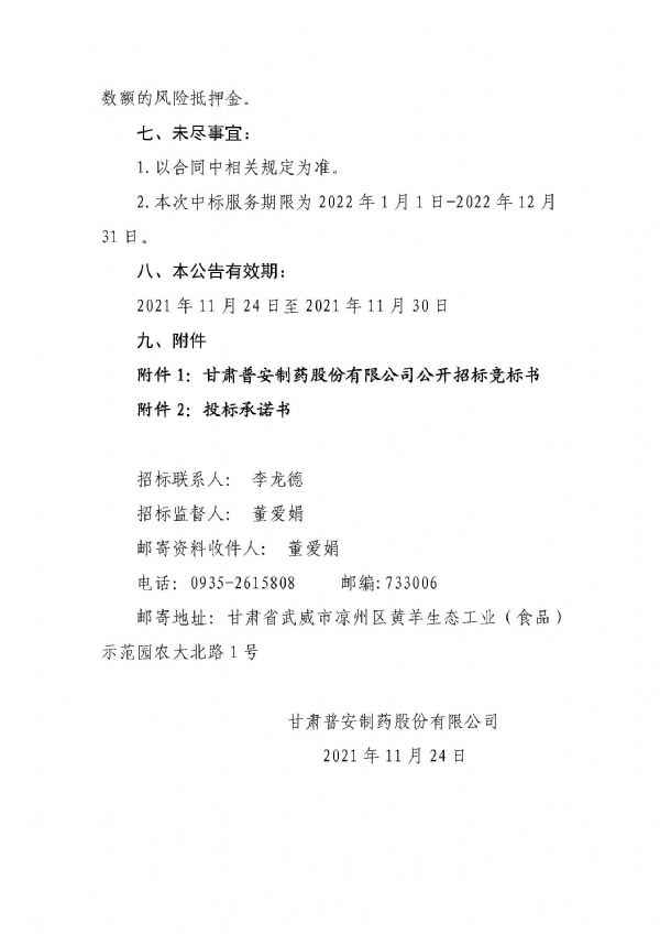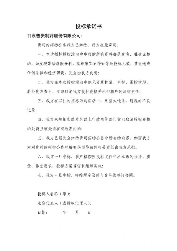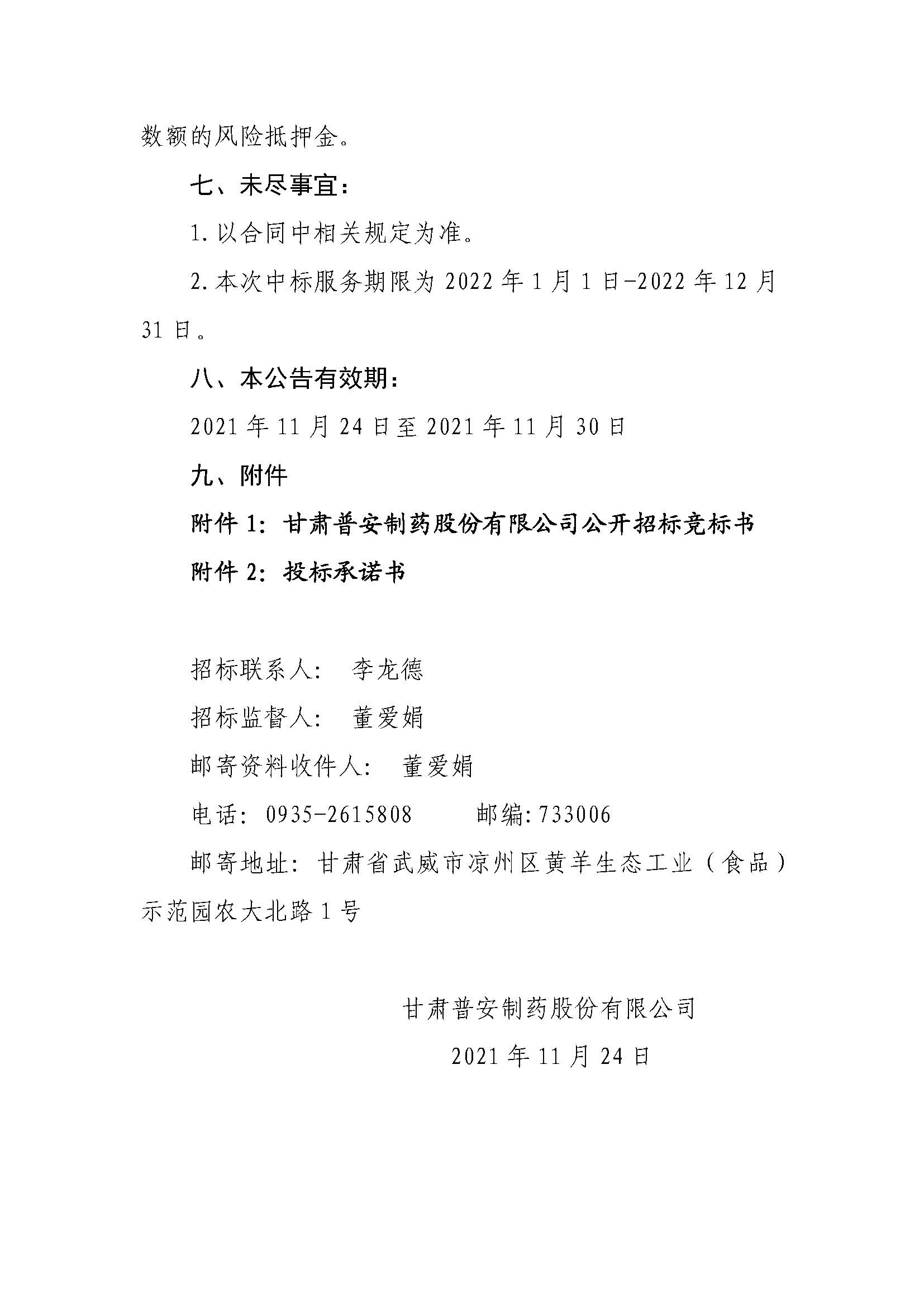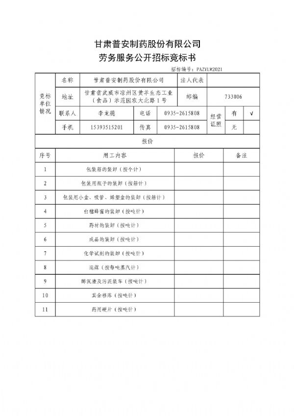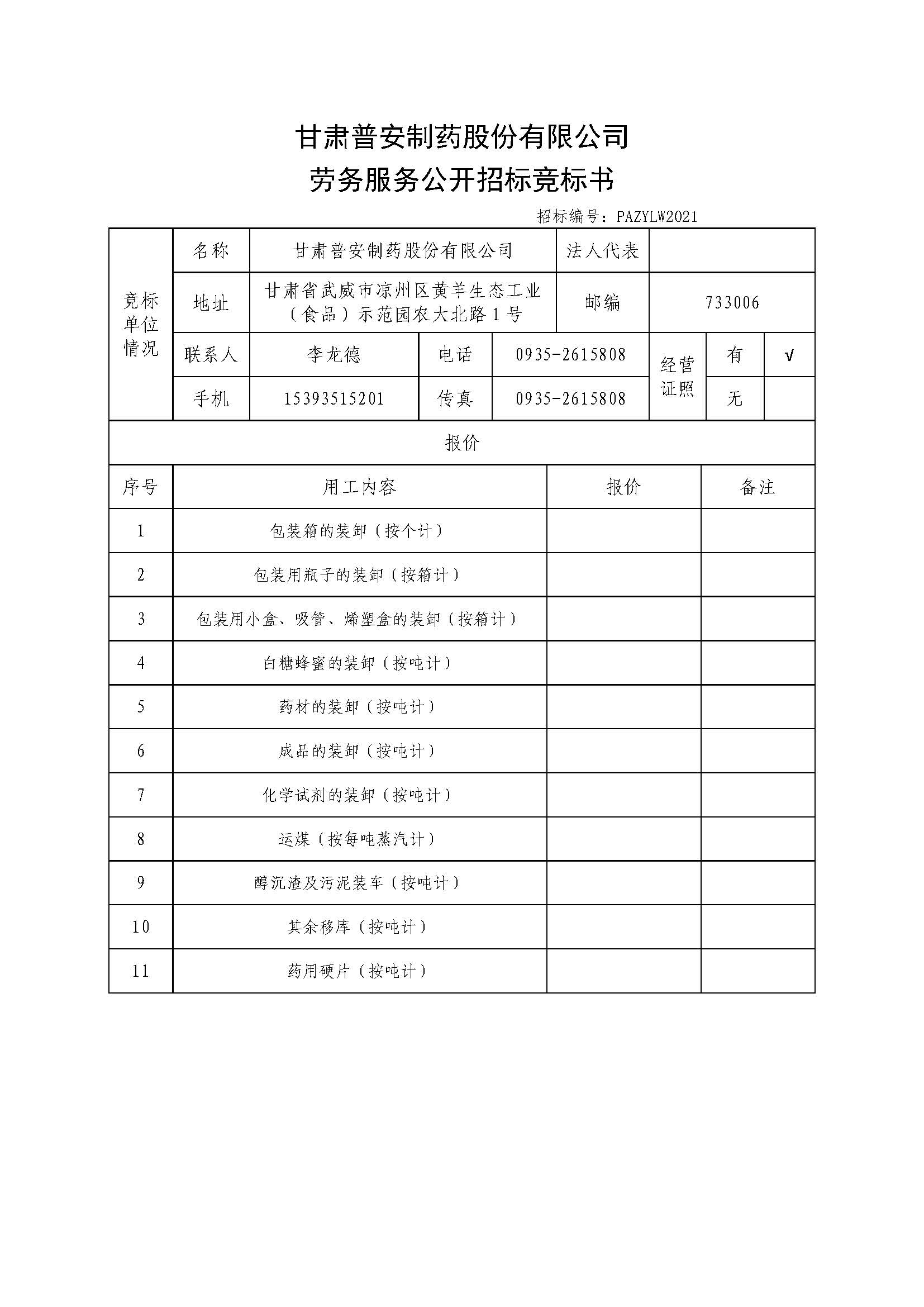 甘肅普安制藥股份有限公司裝卸業(yè)務(wù)招標(biāo)公告