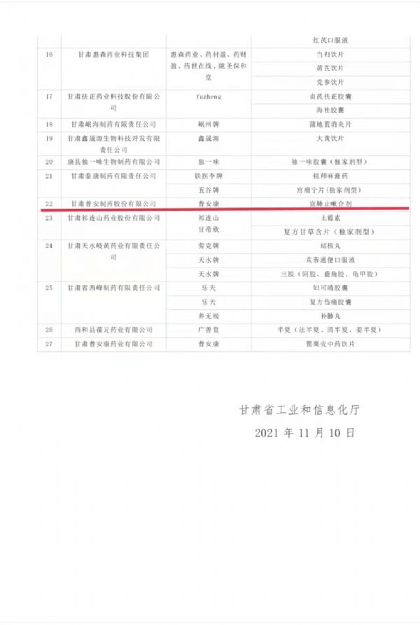 喜報!喜報!宣肺止嗽合劑進入隴藥大品種大品牌培育目錄(2021版)