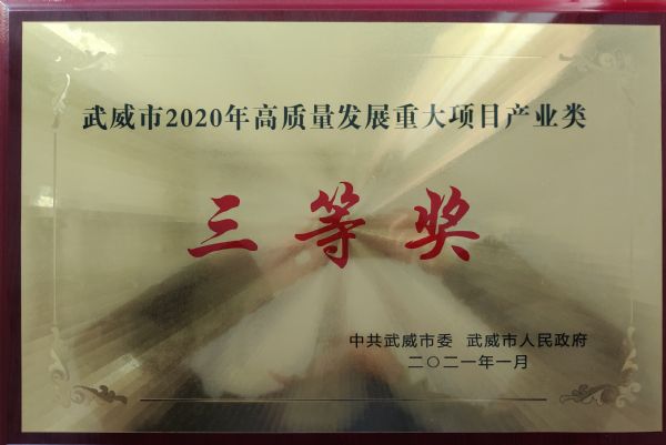 又獲獎(jiǎng)了!獎(jiǎng)金100萬(wàn)元!普安制藥榮獲武威市2020年高質(zhì)量發(fā)展重大項(xiàng)目產(chǎn)業(yè)類三等獎(jiǎng)!