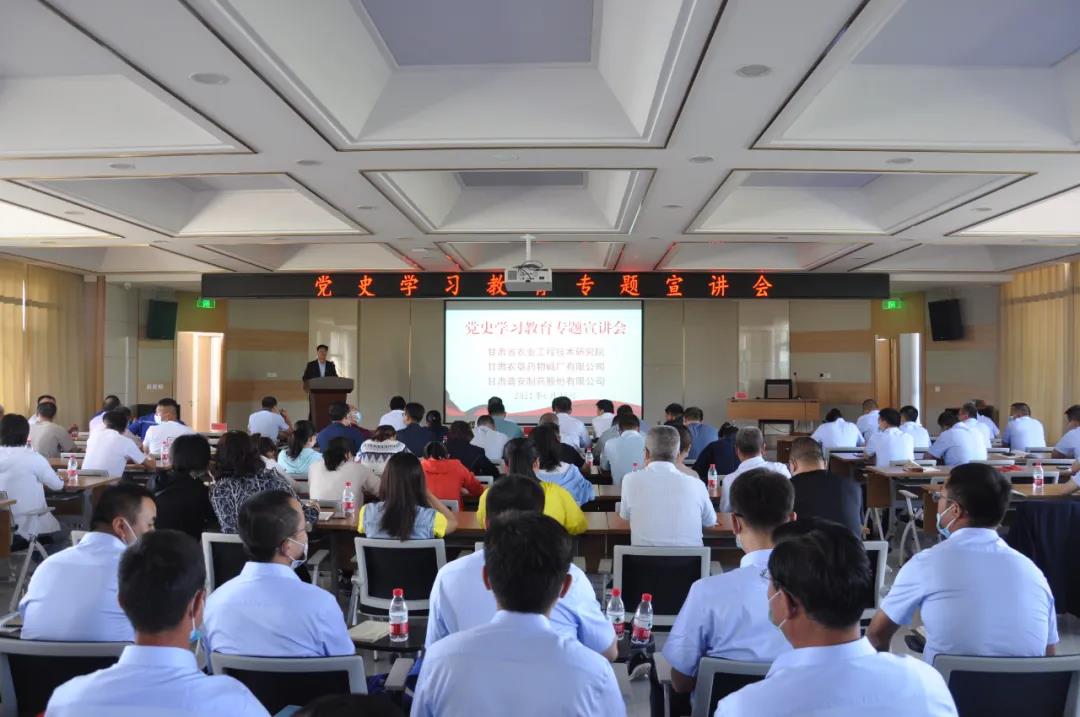 6月25日,按照武威市委統一安排,進一步把黨史學習教育作為增強“四個意識”、堅定“四個自信”、做到“兩個維護”的重要檢驗,甘肅普安制藥股份有限公司、甘肅省農業工程技術研究院、甘肅農墾藥物堿廠有限公司三個單位聯合舉辦了黨史學習教育專題宣講會。會議邀請武威市委宣講團成員、武威職業學院講師魏玲作黨史學習教育專題宣講——《中國共產黨百年輝煌歷史》。
