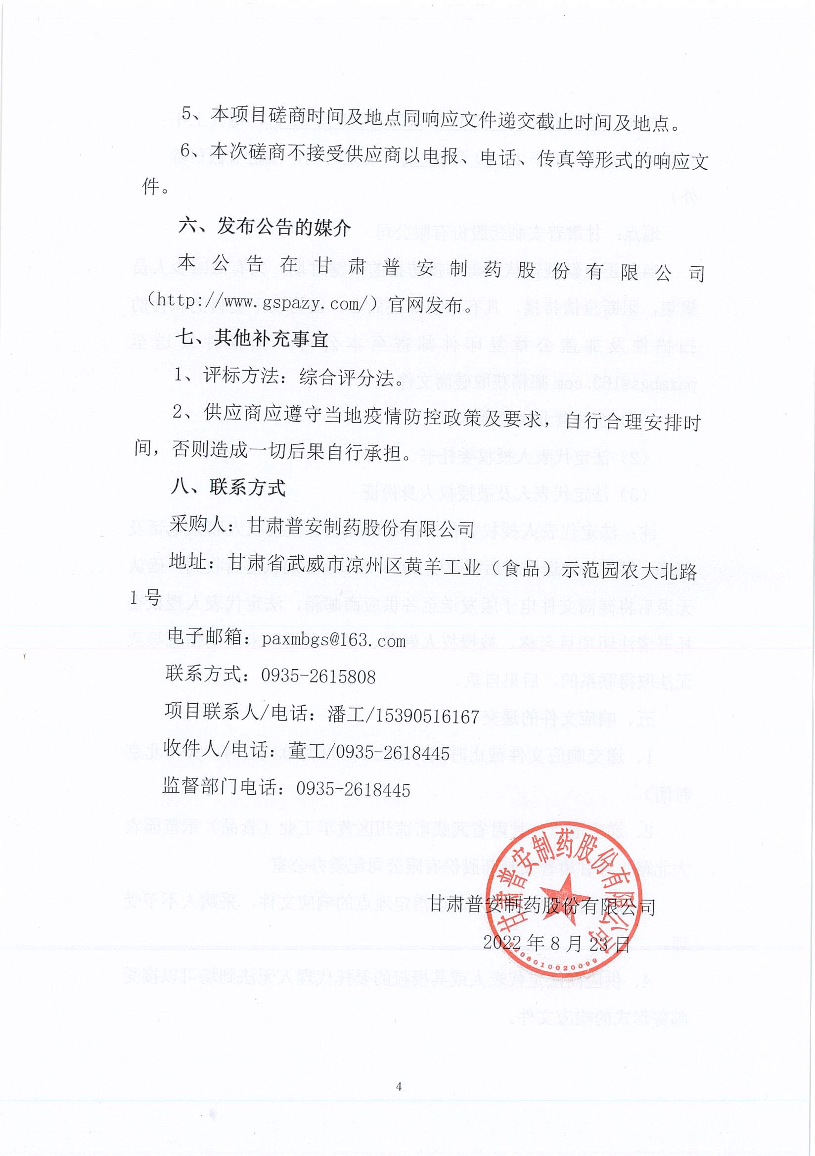 甘肅普安制藥股份有限公司年產5000萬盒(3億支)宣肺止嗽合劑等液體制劑生產線升級改造項目工程造價咨詢競爭性磋商公告