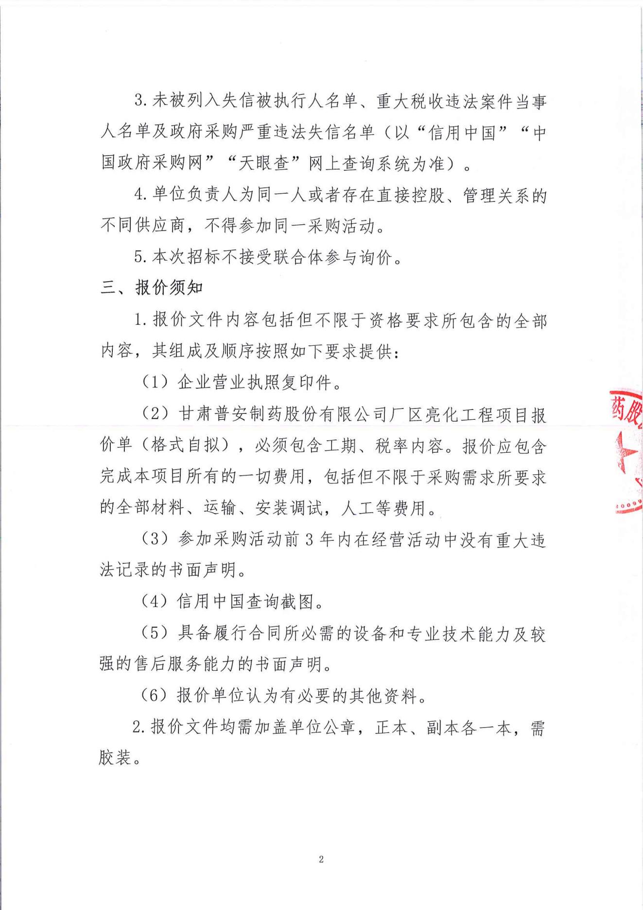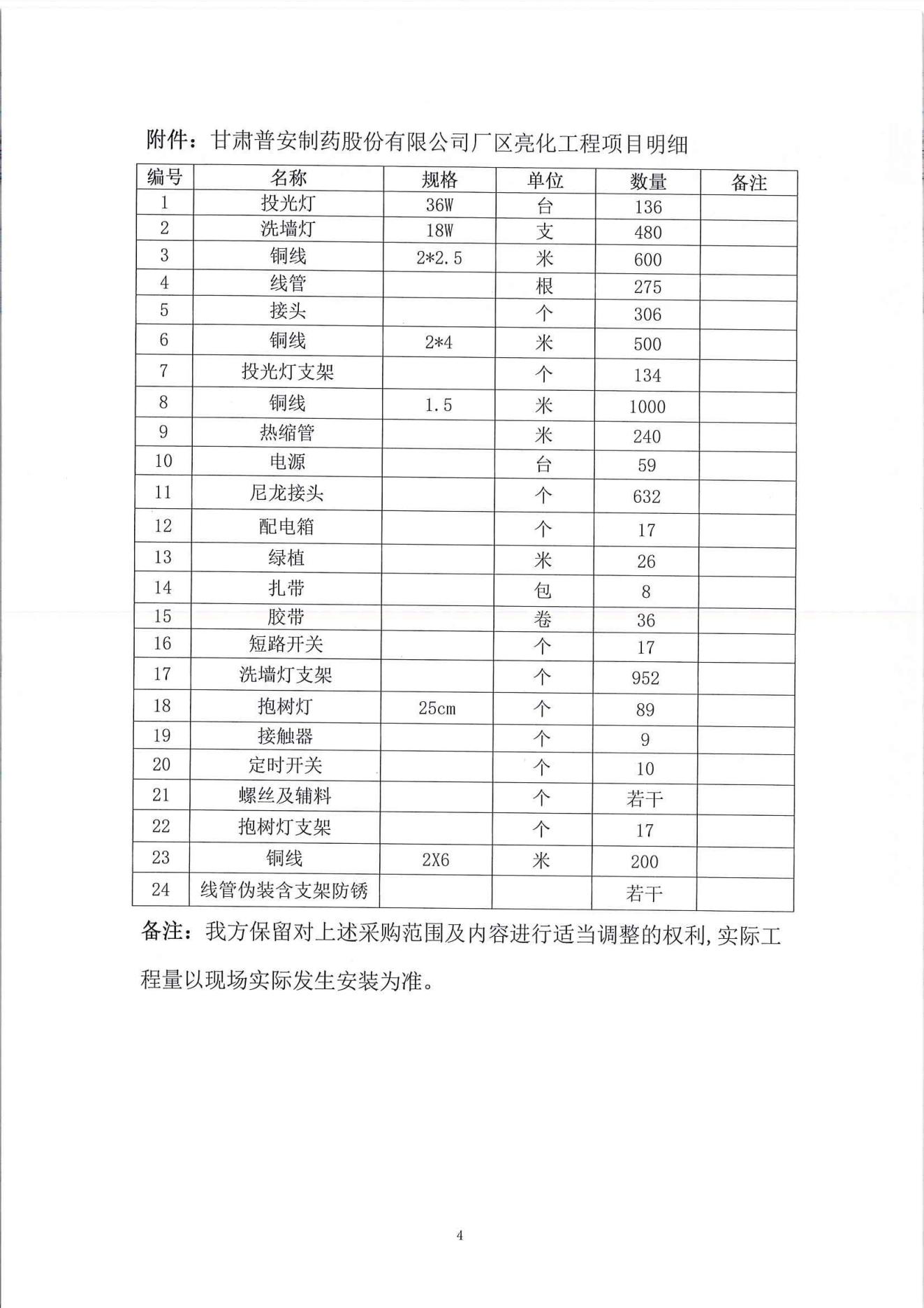 甘肅普安制藥股份有限公司廠區(qū)亮化工程項目詢價公告