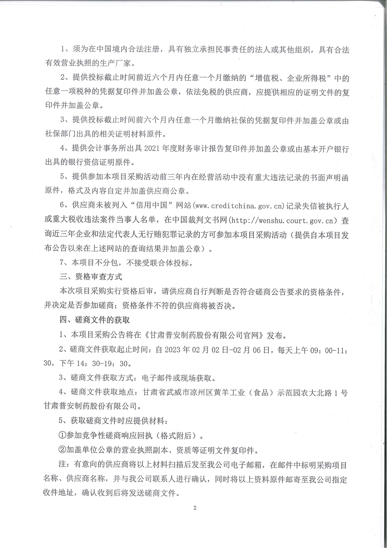 甘肅普安制藥股份有限公司 2#、3#、5#包裝線升級改造項目競爭性磋商公告