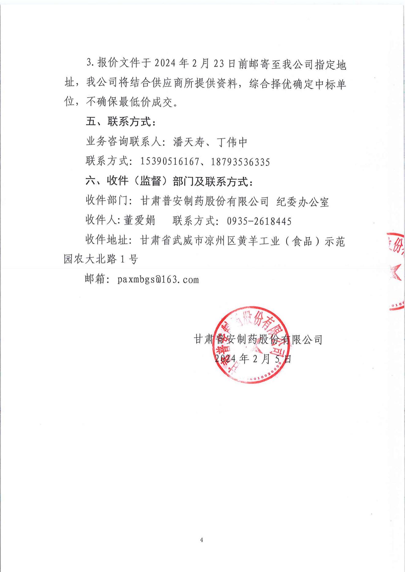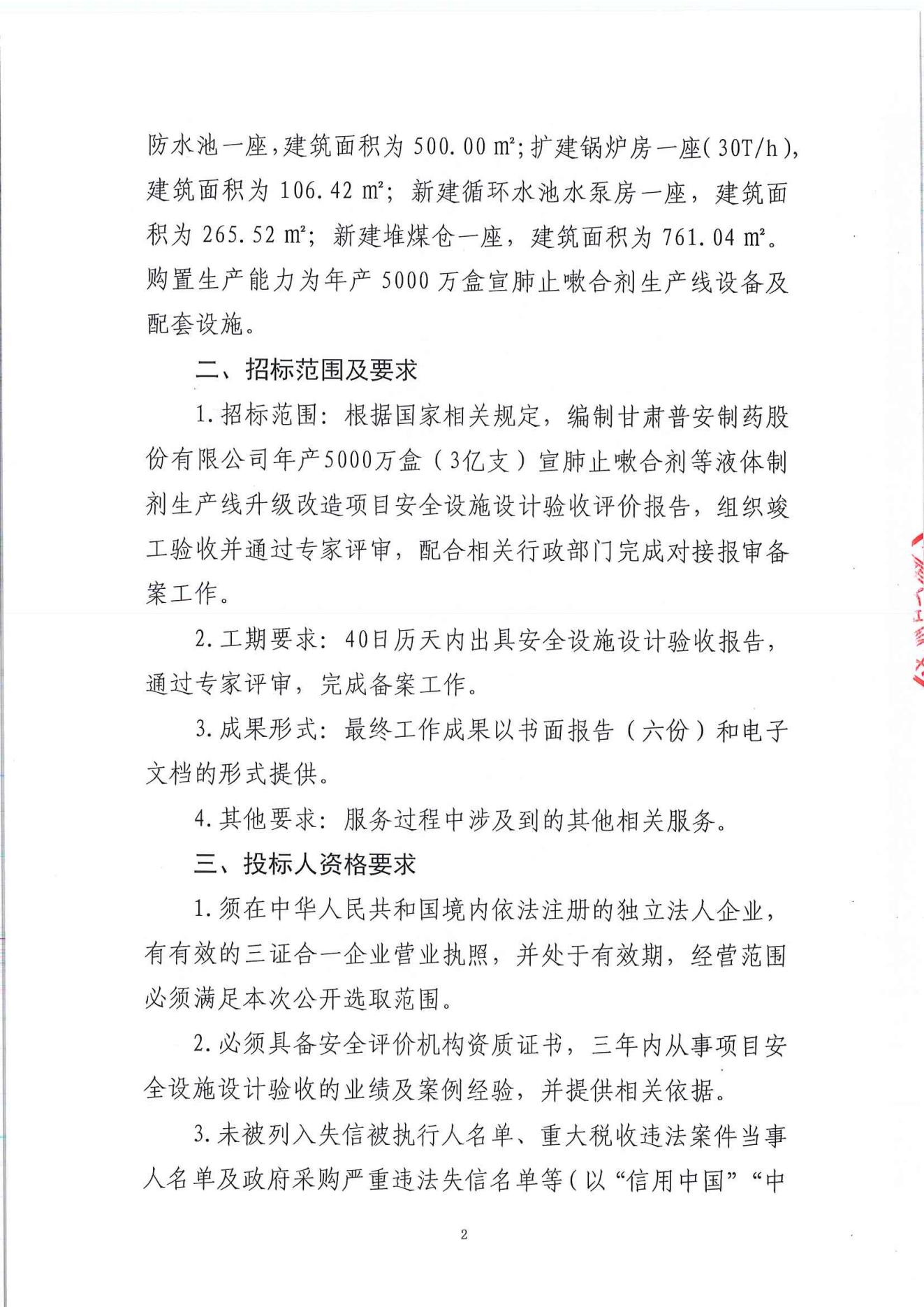 甘肅普安制藥股份有限公司年產5000萬盒(3億支)宣肺止嗽合劑等液體制劑生產線升級改造項目安全設施設計驗收服務招標公告