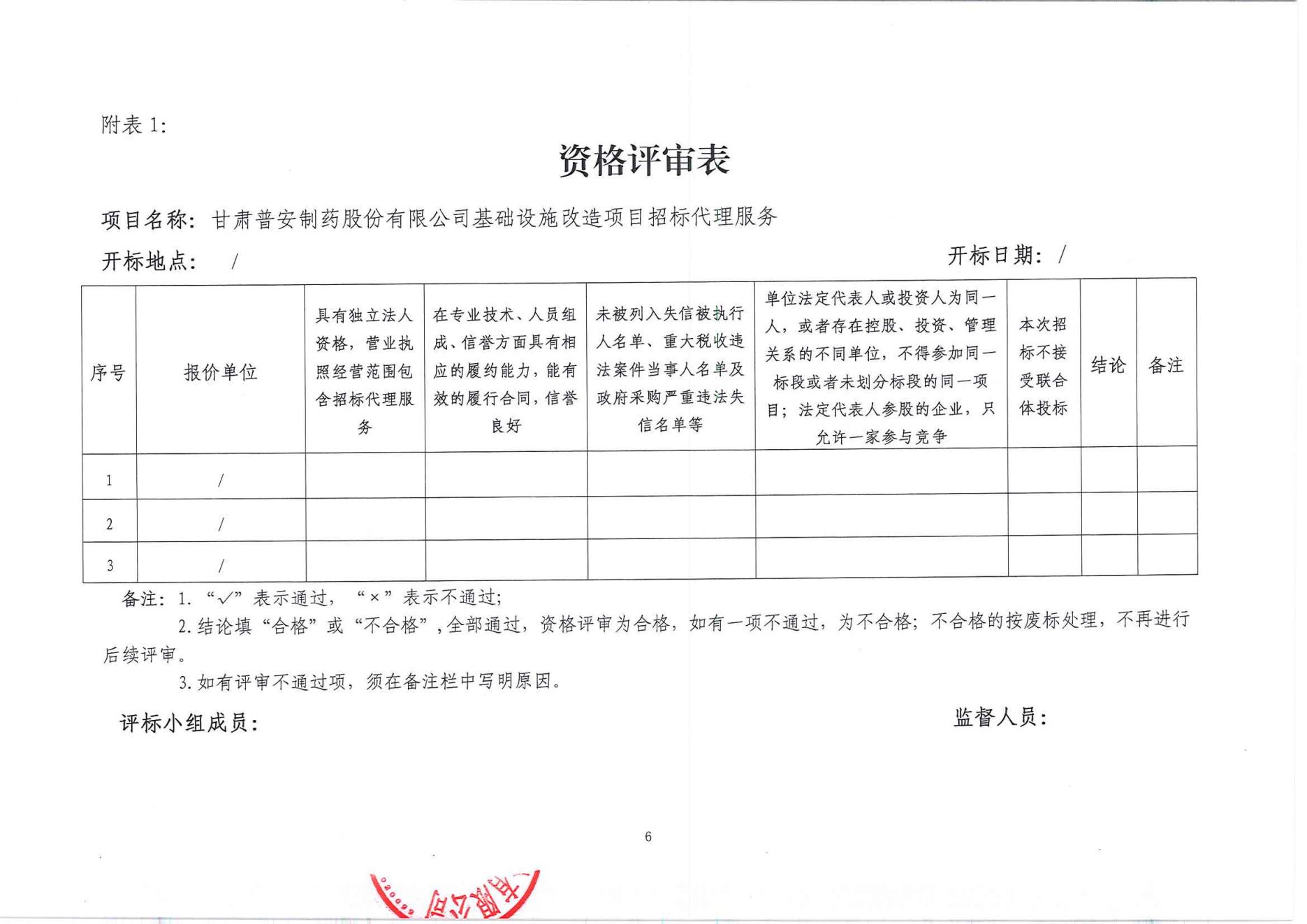 甘肅普安制藥股份有限公司基礎設施改造項目招標代理招標公告