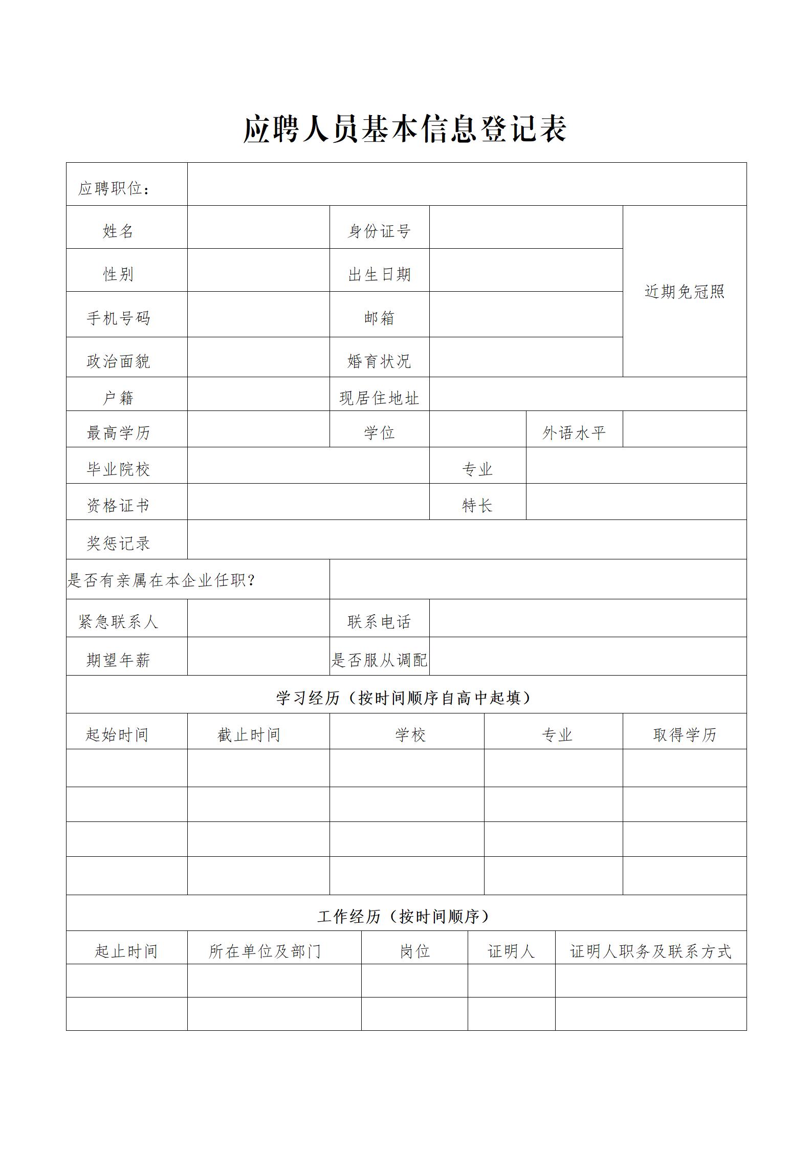 附件:1.應聘人員基本信息登記表