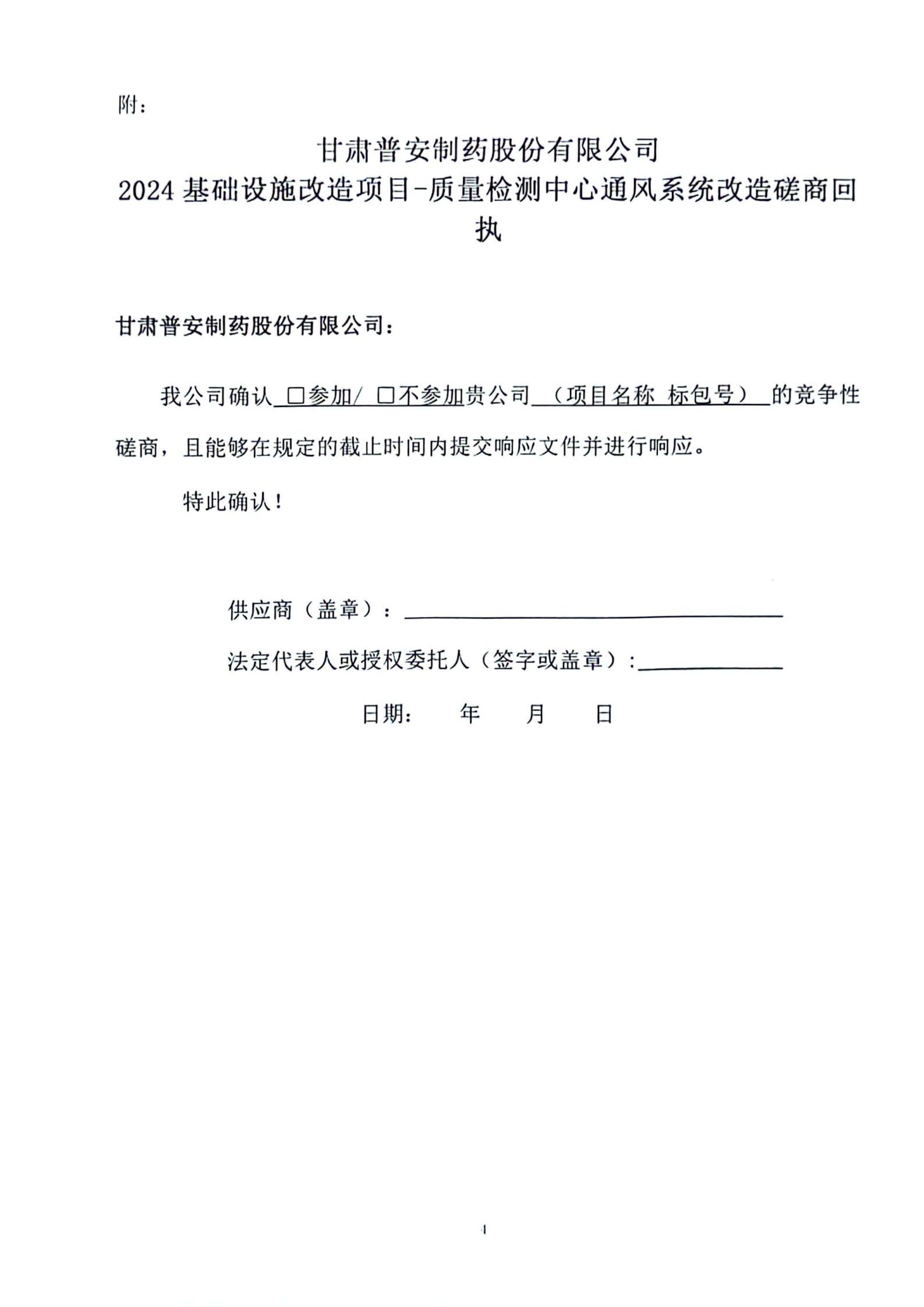 甘肅普安制藥股份有限公司2024年基礎設施改造項目-質量檢測中心通風系統改造競爭性磋商公告