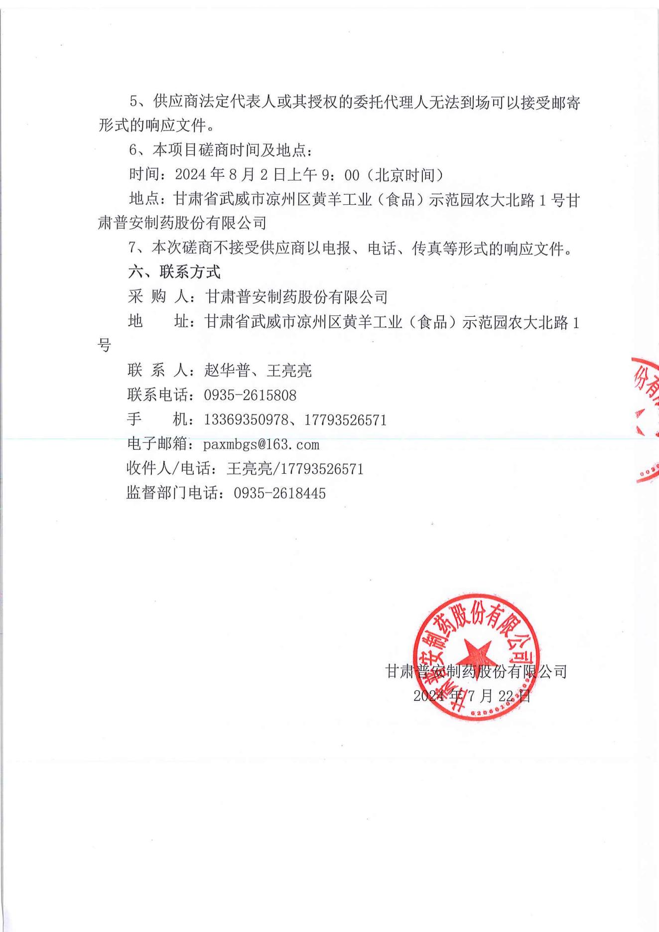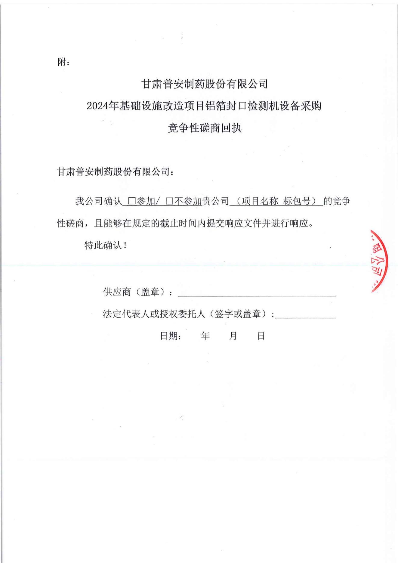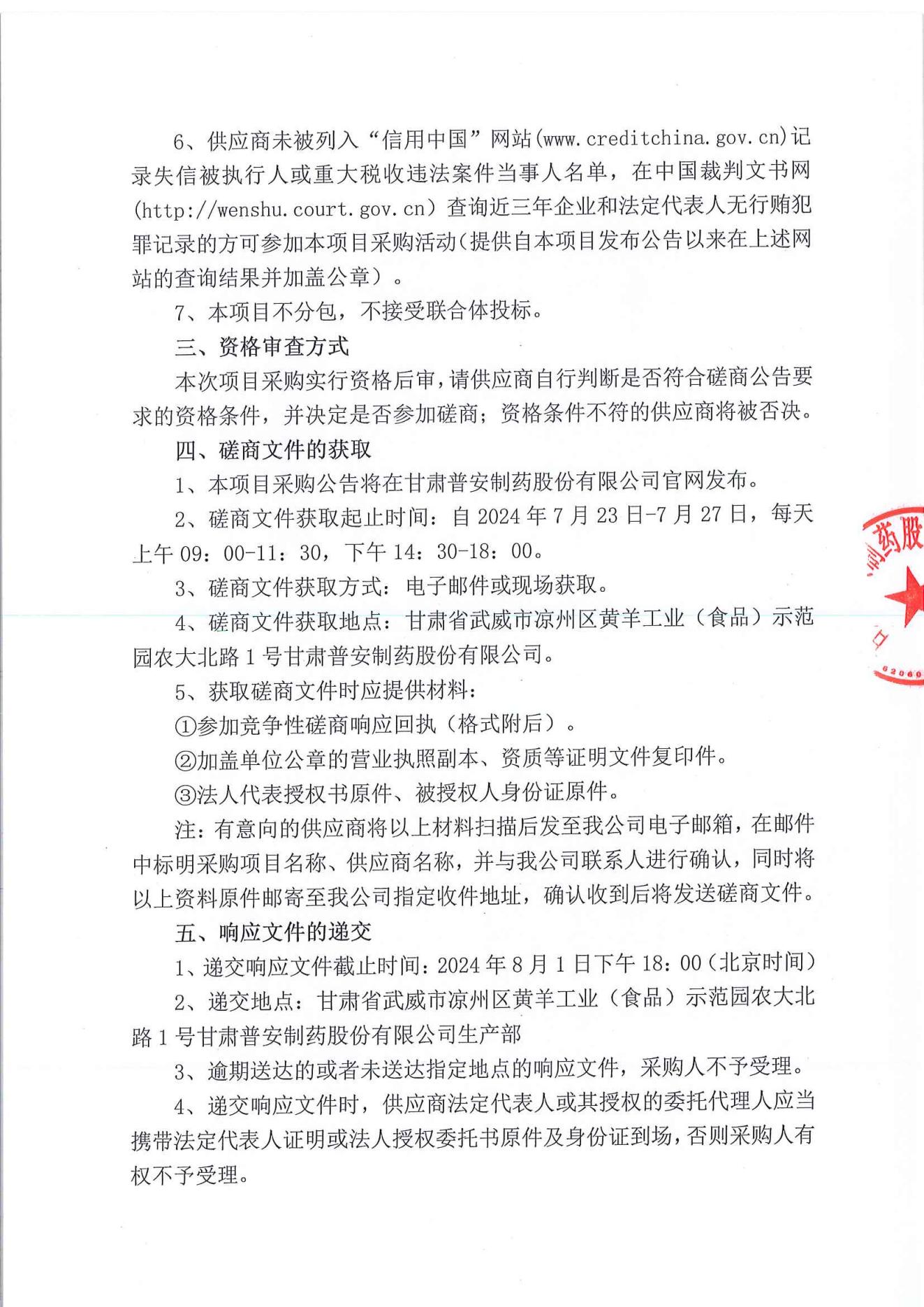 甘肅普安制藥股份有限公司2024年基礎(chǔ)設(shè)施改造項目鋁封口檢測機設(shè)備采購競爭性磋商公告
