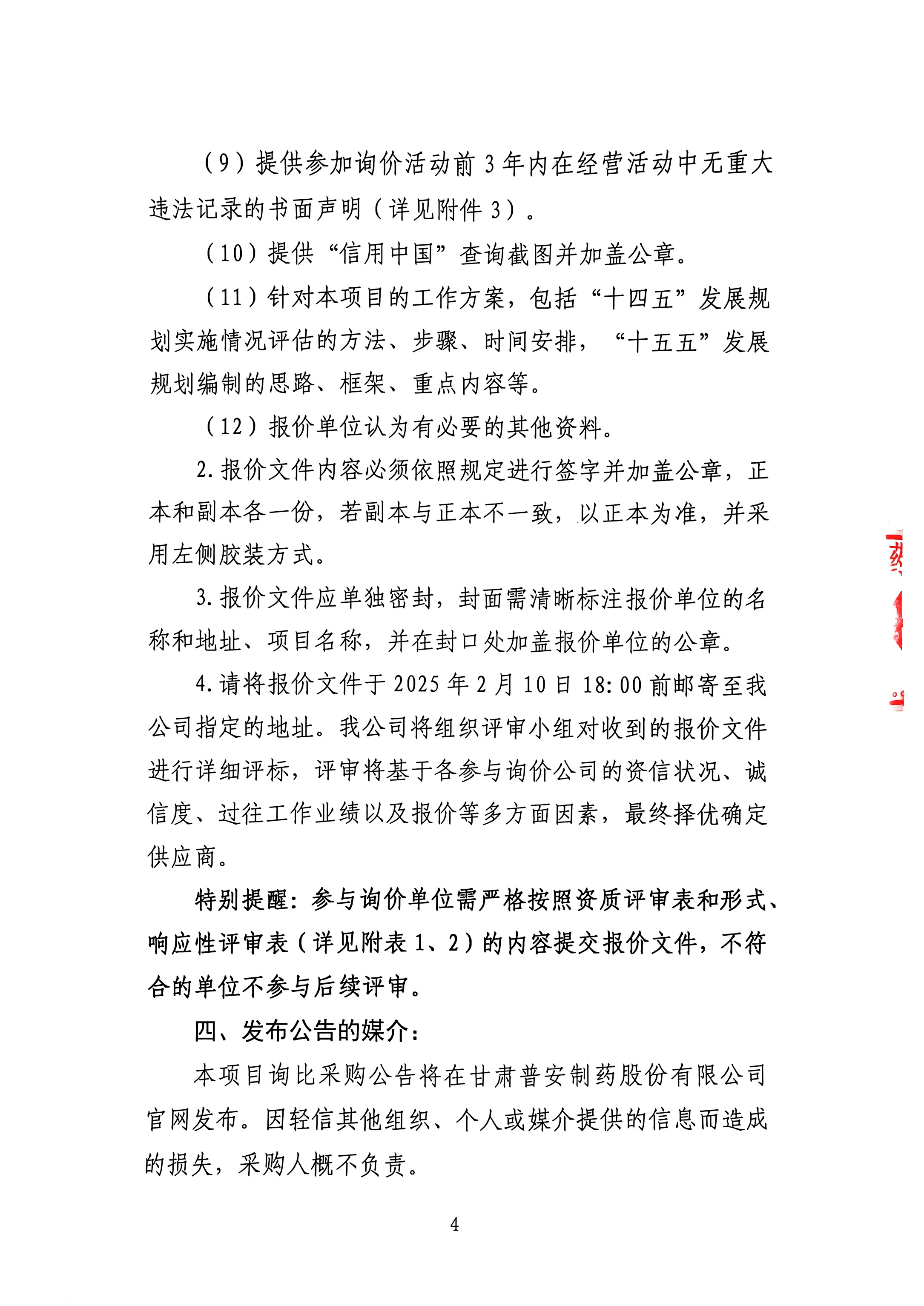 甘肅普安制藥股份有限公司“十五五”發(fā)展規(guī)劃編制及“十四五”發(fā)展規(guī)劃實施情況評估采購項目詢價公告